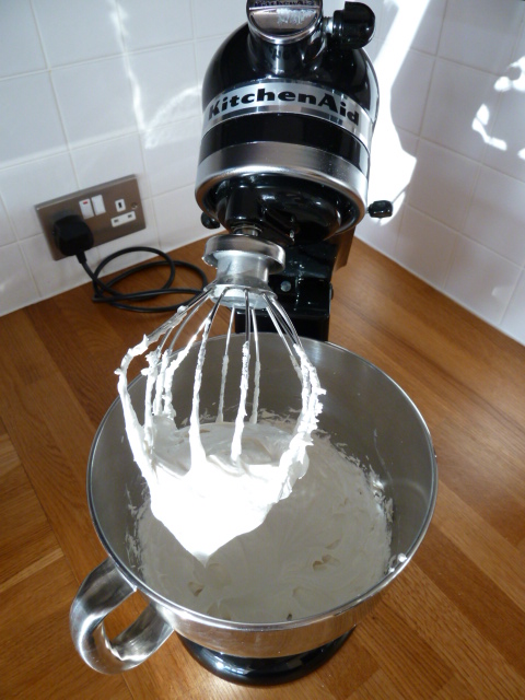 - Add the sugar a spoonful a time and whisk until the mixture is thick and glossy